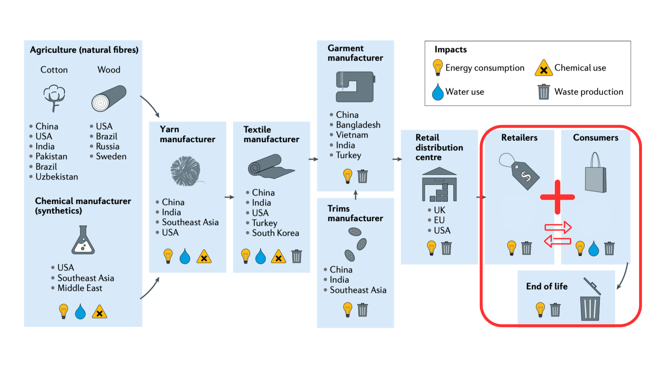 Figure 2: Garment-manufacturing supply chain (Niinimäki et al., 2020, 191).